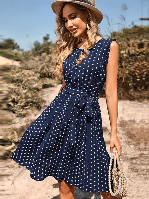 Embrace spring in style with the Sierra Polka Dot Dress, redefining elegance with its timeless, figure-enhancing design.
