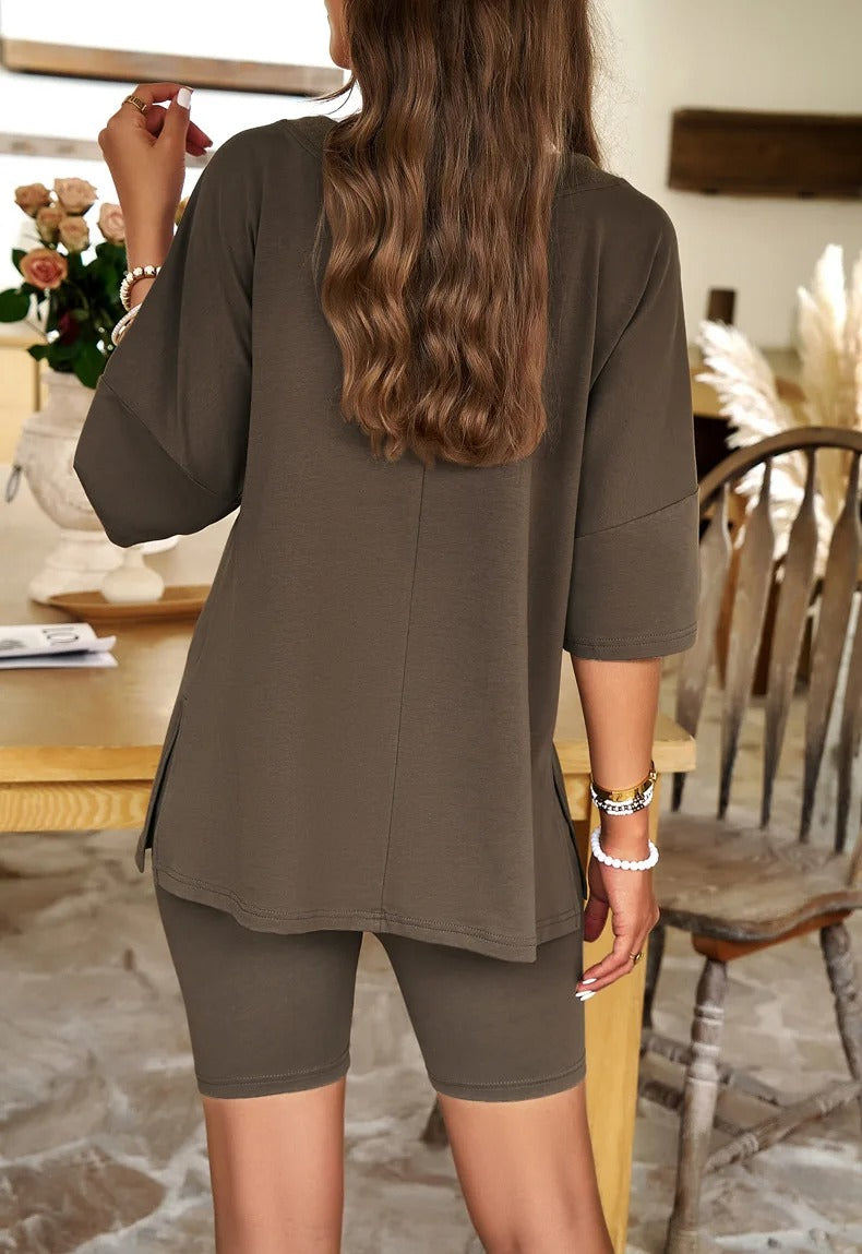 The season with the Wylma Wildberry set, where effortless elegance meets casual chic. This set ensures both comfort and durability, allowing you to showcase your fashion sense without compromising on practicality. The relaxed fit of the tops and shorts makes it the perfect outfit for warm spring and summer days.